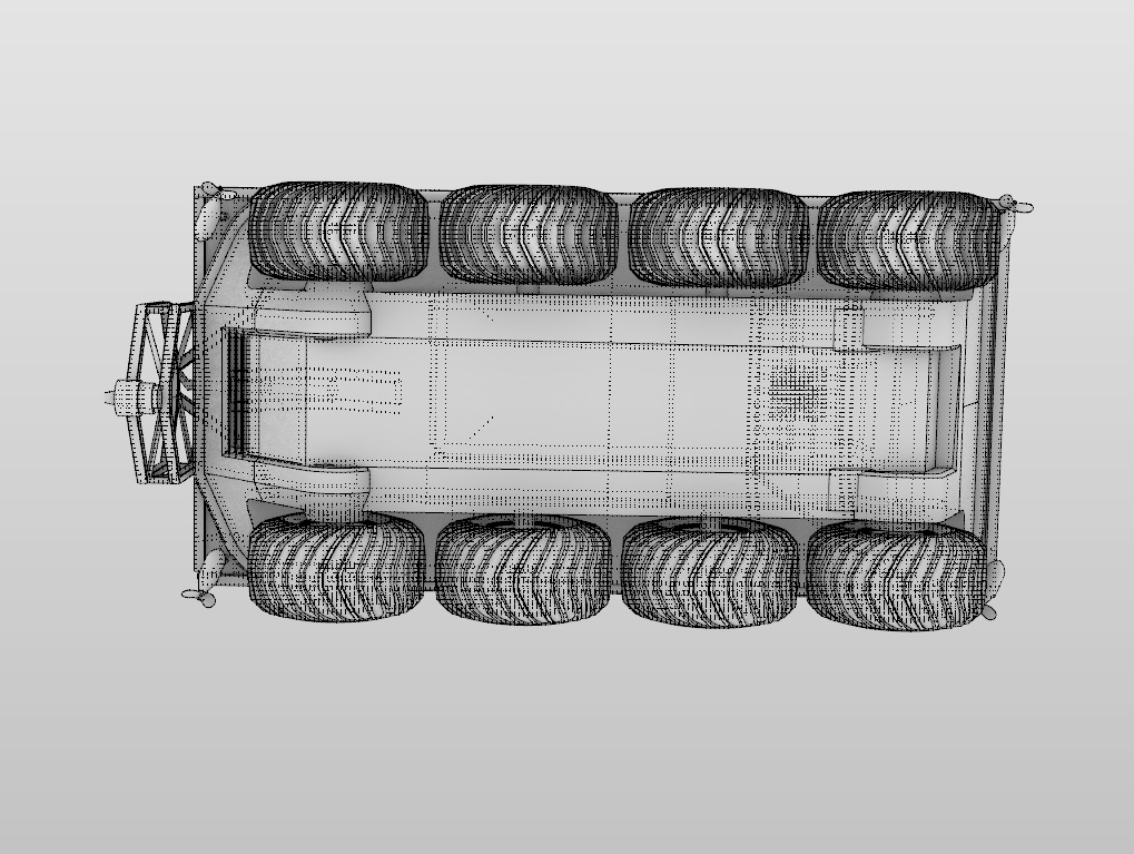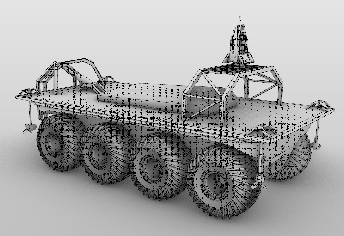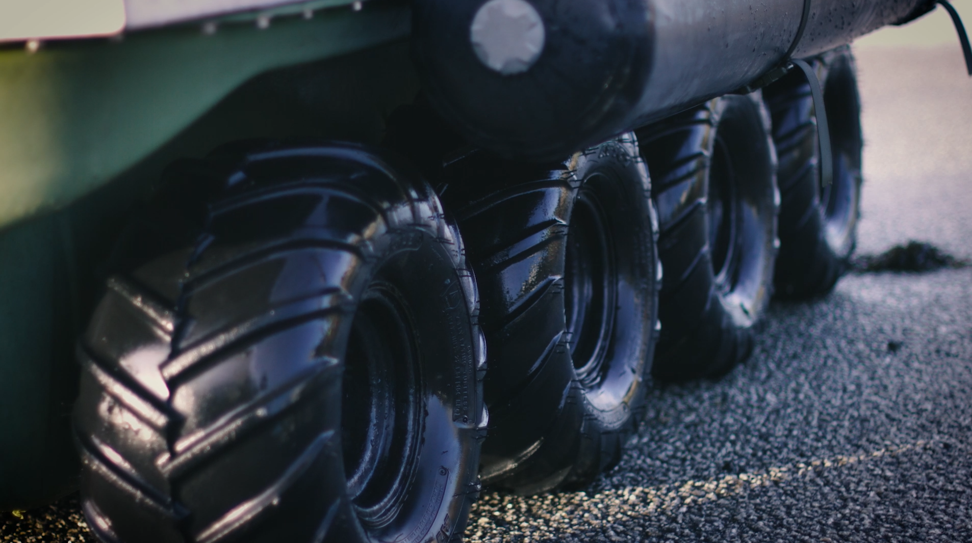 On land, Argonaut features an 8×8 wheel drive system with high-torque motors and a robust gearbox, capable of climbing inclines up to 45 degrees. It reaches speeds of up to 16 mph (at 6000 RPM), with a standard cruising speed of 8 mph (at 3000 RPM). In water, the vehicle achieves 4.5 mph using dual 48V Torqeedo Cruise 4.0 electric motors, offering shallow draft performance ideal for confined or transitional environments.