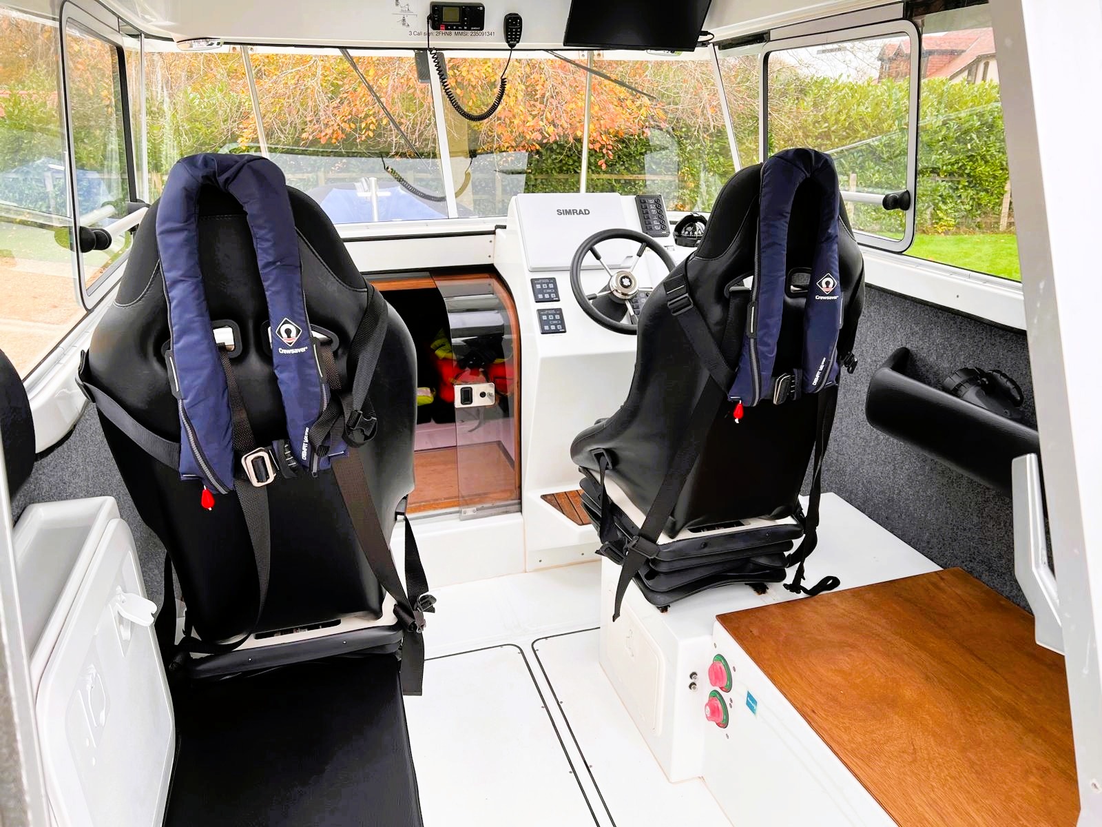 In addition to a range of electronic navigation aids, including chart plotter, radar, echo sounder and imaging sonar the wheelhouse provides a bright and airy work space with good visibility, suspension seating and cabin heater making her ideal for 12 hour coastal operation at any time of year.